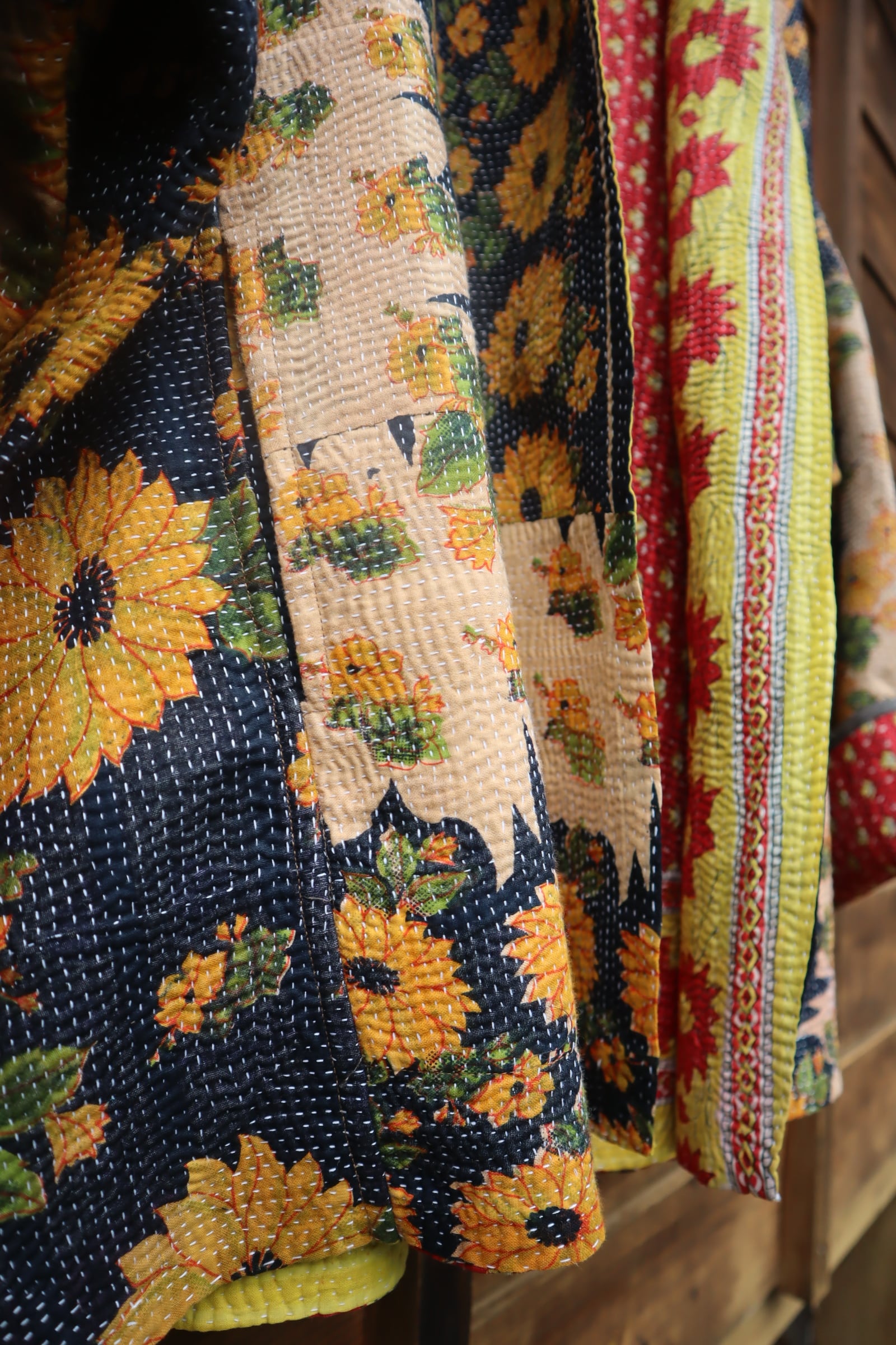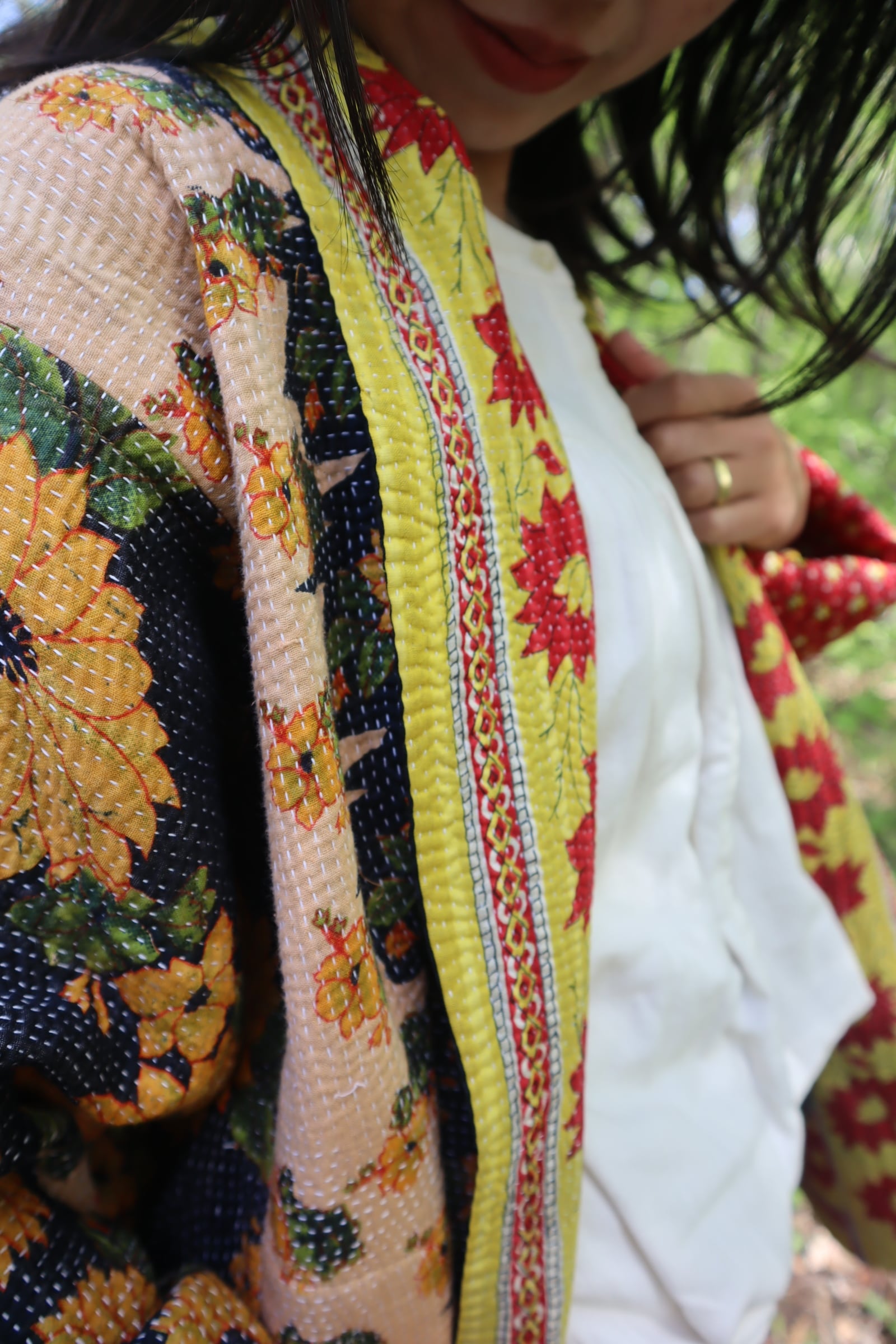 着古したコットンサリーを重ねて