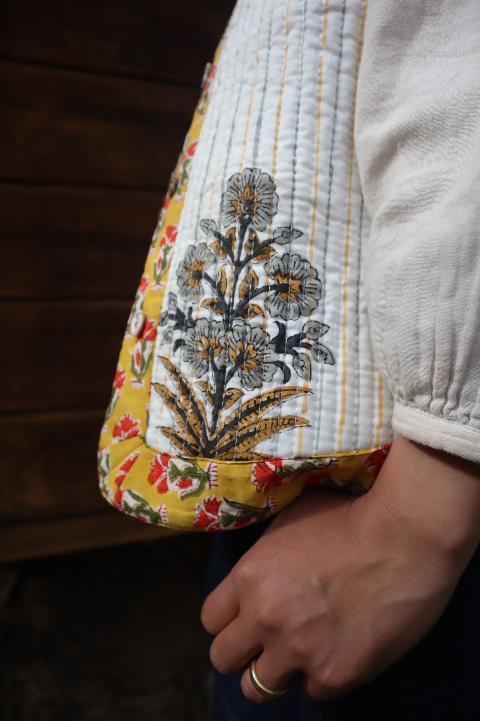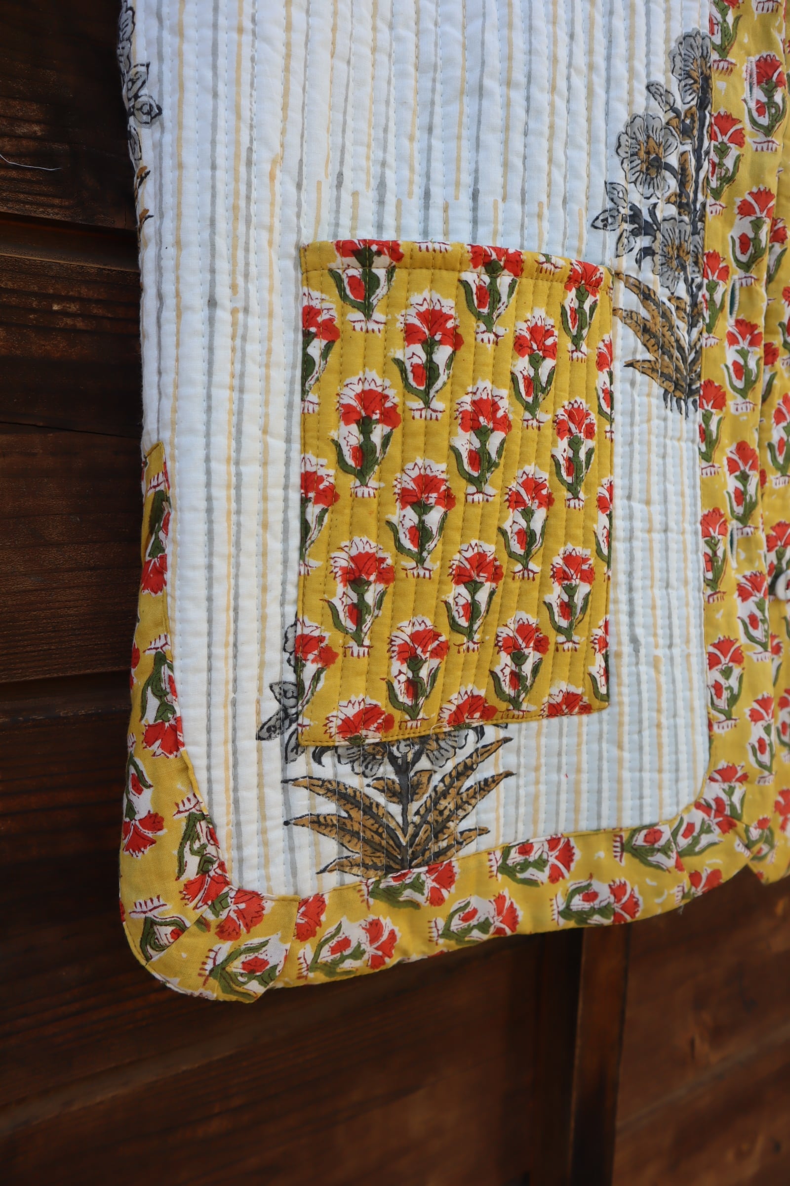 2種類のブロックプリント生地を組合せて